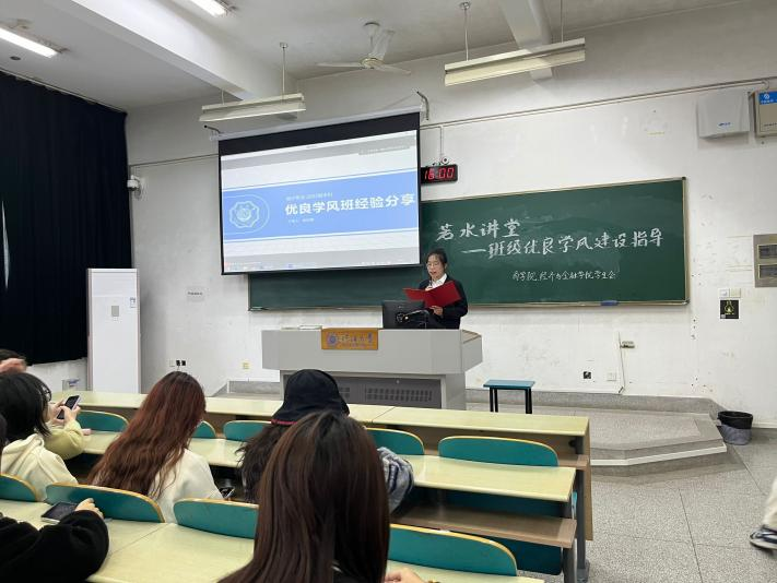 为加强学院学风建设,进一步营造良好的学习氛围,同时帮助2023级班委更好地开展学风、班风建设活动,推动班级、年级的学风建设,2024年3月22日下午4点,商学院、麻豆app 学生会学习部在江宁校区举办“若水讲堂——班级优良学风建设指导”活动,邀请优良学风班班级负责人赵淑雅、刘坤为商学院、麻豆app 2023级班委分享班级建设经验。