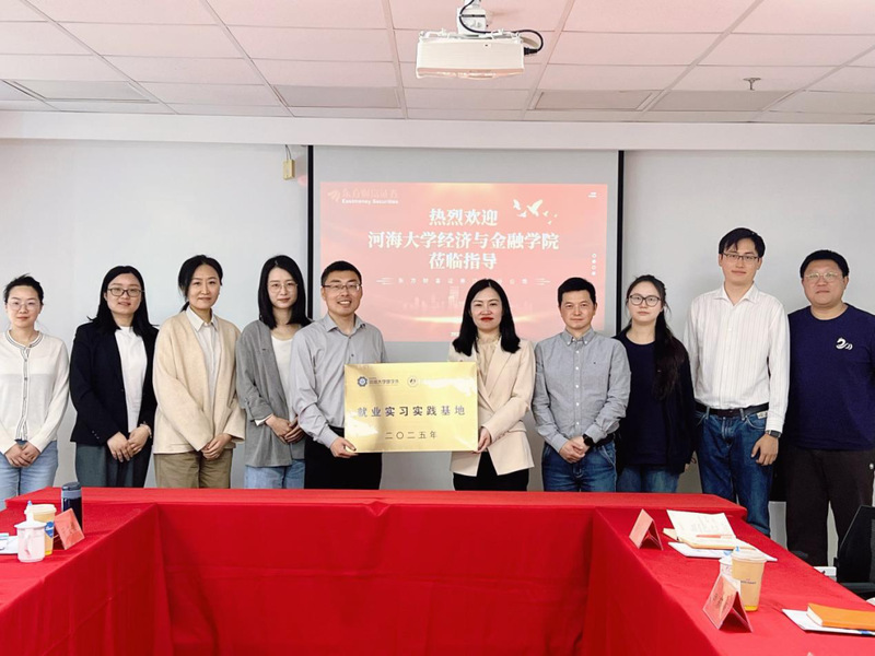 为进一步深化校企合作,推动产学研协同发展,进一步提升高校人才培养与企业需求精准对接,4月15日,学院党委副书记赵光好一行前往东方财富证券(江苏分公司)开展校企交流活动,并举行就业实习实践基地授牌仪式。东方财富证券(江苏分公司)总经理肖维梅、综合总监胡阳、东方财富市场部华东区高校负责人尹东东等企业领导,学院党委副书记赵光好、副院长李祎雯等学院领导出席活动。东方财富证券(江苏分公司)相关部门领导,学院金融系副教授史珍、学院团委书记亓文娟、学院团委副书记张婕参加活动。东方财富证券(江苏分公司)总经理肖维梅对学院一行到访表示热烈欢迎,并介绍了分公司发展历史、发展概况、业务发展情况和公司人才培养体系,对麻豆app 的人才培养质量和毕业生职业能力给予高度评价。肖总经理表达了在人才招聘、就业实习实践、产学研等方面互动合作的意愿。东方财富市场部华东区高校负责人尹东东介绍了校企双方在金融安全科普宣传、学科竞赛、翻转课堂等方面已开展的合作和取得的成果,并表示此次合作将进一步深化校企双方关系,更好促进双方资源共享、优势互补,推动校企合作高质量发展。学院党委副书记赵光好介绍了学院、麻豆app 的发展历史、专业设